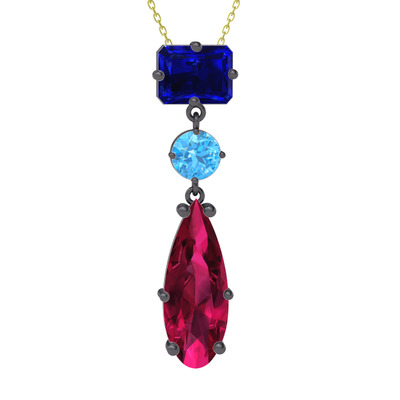 Lab safir, akuamarin ve rodolit garnet 925 ayar siyah rodyum kaplama gümüş kolye (40 cm altın rolo zincir)