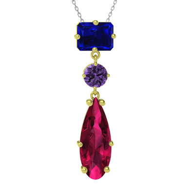 Lab safir, ametist ve rodolit garnet 925 ayar altın kaplama gümüş kolye (40 cm beyaz altın rolo zincir)