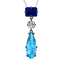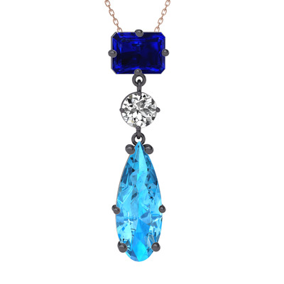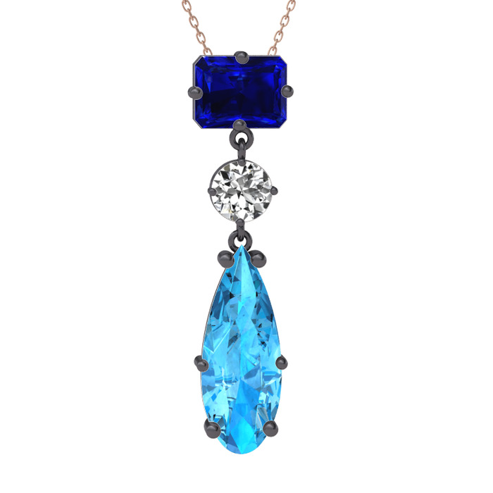 Lab safir, beyaz zirkon ve akuamarin 925 ayar siyah rodyum kaplama gümüş kolye (40 cm rose altın rolo zincir)