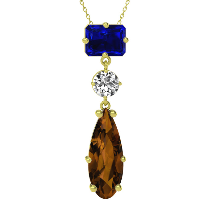 Lab safir, beyaz zirkon ve dumanlı kuvars 14 ayar altın kolye (40 cm altın rolo zincir)