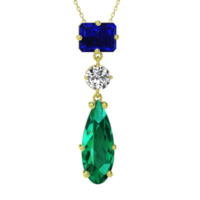 Lab safir, beyaz zirkon ve yeşil kuvars 14 ayar altın kolye (40 cm altın rolo zincir)