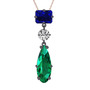 Lab safir, beyaz zirkon ve yeşil kuvars 925 ayar siyah rodyum kaplama gümüş kolye (40 cm rose altın rolo zincir)