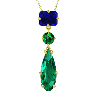 Lab safir ve yeşil kuvars 14 ayar altın kolye (40 cm altın rolo zincir)