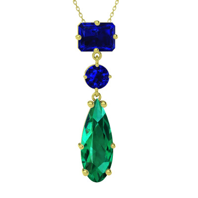 Lab safir ve yeşil kuvars 14 ayar altın kolye (40 cm altın rolo zincir)