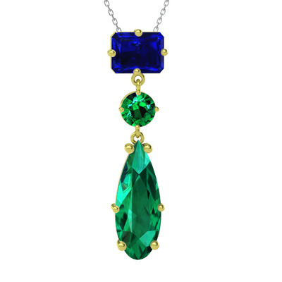 Lab safir ve yeşil kuvars 18 ayar altın kolye (40 cm beyaz altın rolo zincir)