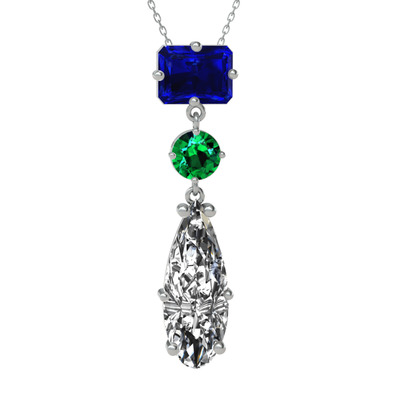 Lab safir, yeşil kuvars ve beyaz zirkon 8 ayar beyaz altın kolye (40 cm beyaz altın rolo zincir)