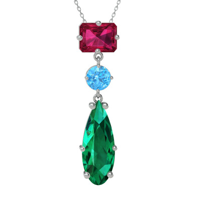 Rodolit garnet, akuamarin ve yeşil kuvars 925 ayar gümüş kolye (40 cm gümüş rolo zincir)