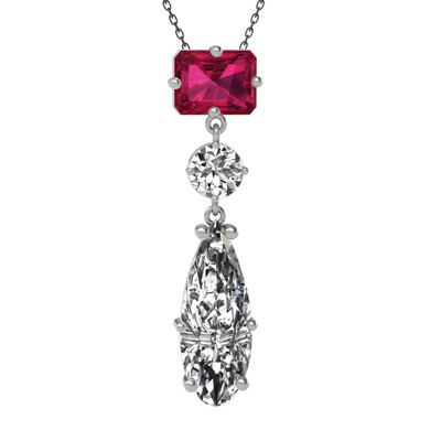 Rodolit garnet ve beyaz zirkon 18 ayar beyaz altın kolye (40 cm gümüş rolo zincir)