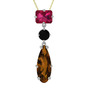 Rodolit garnet, siyah zirkon ve dumanlı kuvars 8 ayar beyaz altın kolye (40 cm altın rolo zincir)