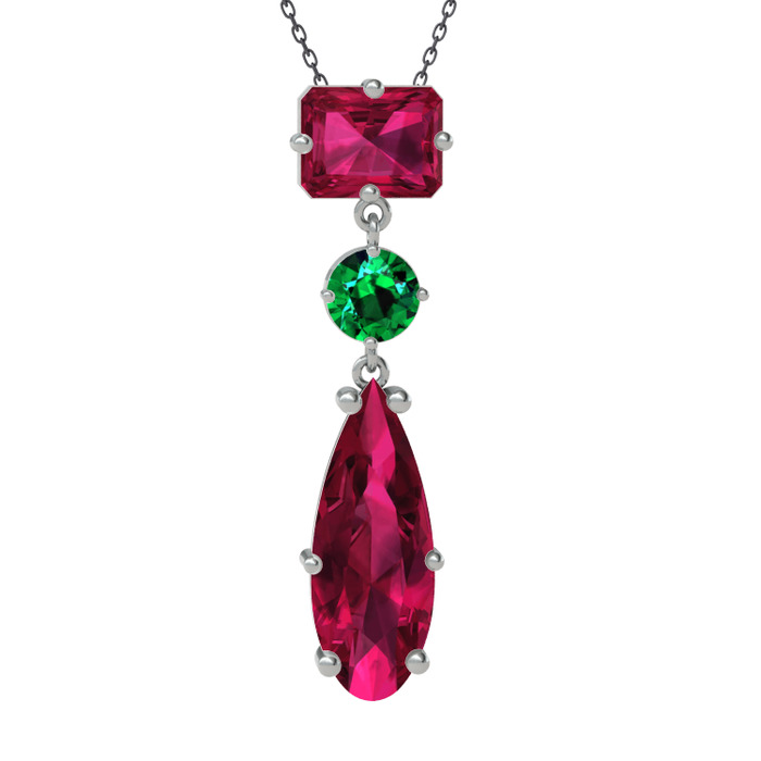 Rodolit garnet ve yeşil kuvars 18 ayar beyaz altın kolye (40 cm gümüş rolo zincir)