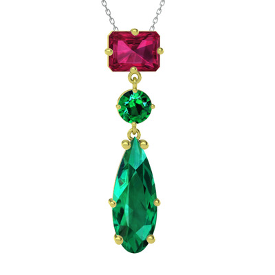 Rodolit garnet ve yeşil kuvars 8 ayar altın kolye (40 cm gümüş rolo zincir)