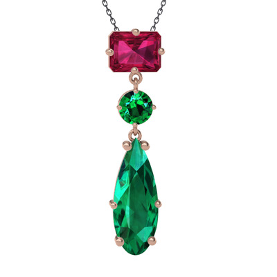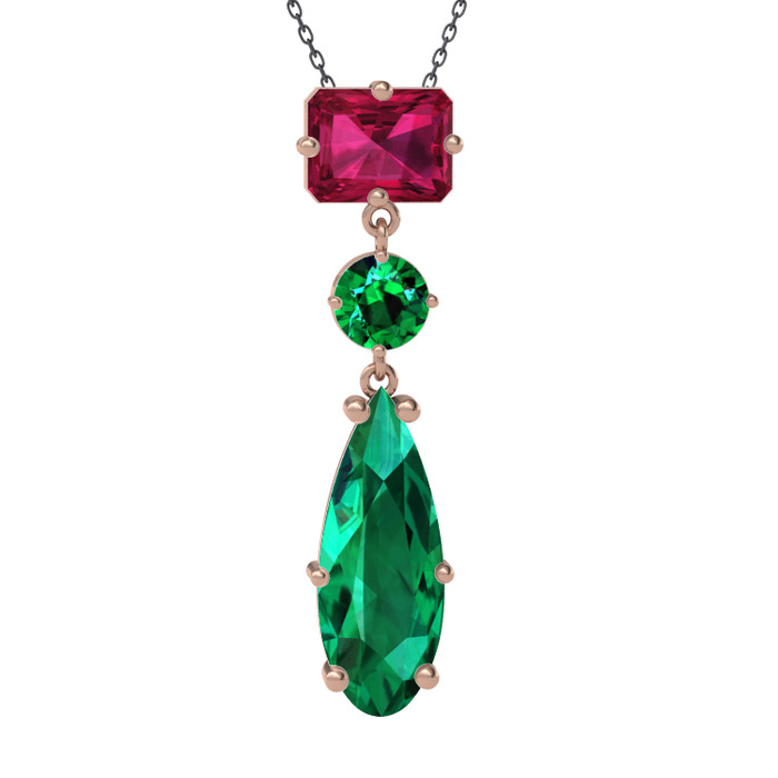 Rodolit garnet ve yeşil kuvars 925 ayar rose altın kaplama gümüş kolye (40 cm gümüş rolo zincir)
