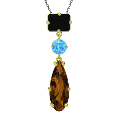 Siyah zirkon, akuamarin ve dumanlı kuvars 18 ayar altın kolye (40 cm gümüş rolo zincir)