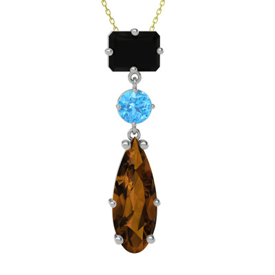 Siyah zirkon, akuamarin ve dumanlı kuvars 8 ayar beyaz altın kolye (40 cm gümüş rolo zincir)