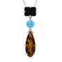Siyah zirkon, akuamarin ve dumanlı kuvars 925 ayar gümüş kolye (40 cm beyaz altın rolo zincir)