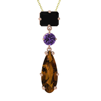 Siyah zirkon, ametist ve dumanlı kuvars 925 ayar rose altın kaplama gümüş kolye (40 cm altın rolo zincir)