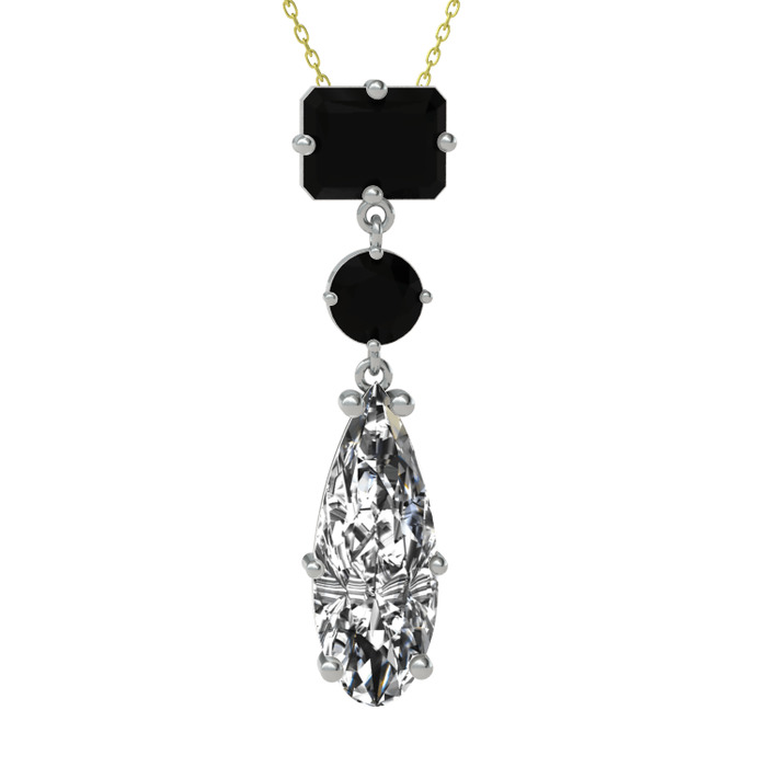Siyah zirkon ve beyaz zirkon 14 ayar beyaz altın kolye (40 cm altın rolo zincir)
