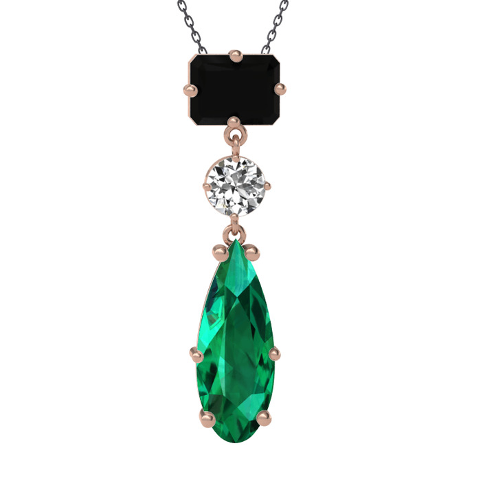 Siyah zirkon, beyaz zirkon ve yeşil kuvars 925 ayar rose altın kaplama gümüş kolye (40 cm gümüş rolo zincir)