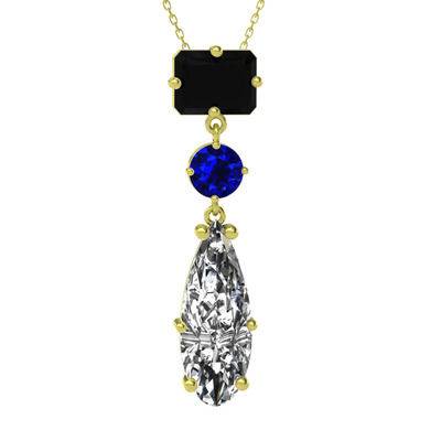 Siyah zirkon, lab safir ve beyaz zirkon 18 ayar altın kolye (40 cm altın rolo zincir)