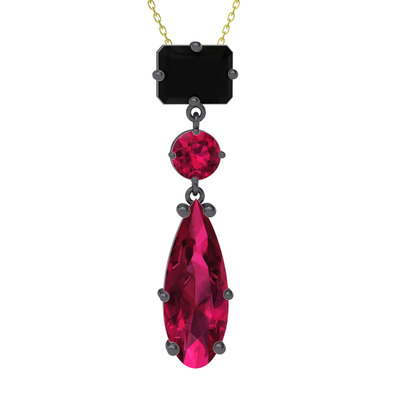 Siyah zirkon ve rodolit garnet 925 ayar siyah rodyum kaplama gümüş kolye (40 cm altın rolo zincir)