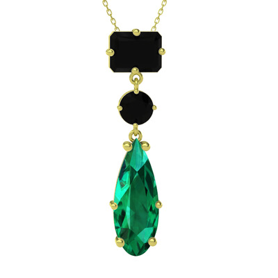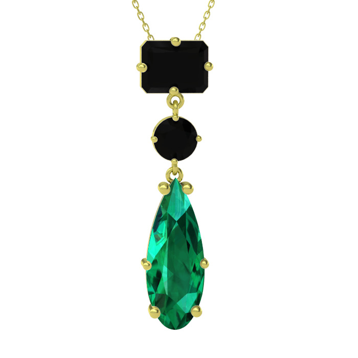 Siyah zirkon ve yeşil kuvars 14 ayar altın kolye (40 cm altın rolo zincir)
