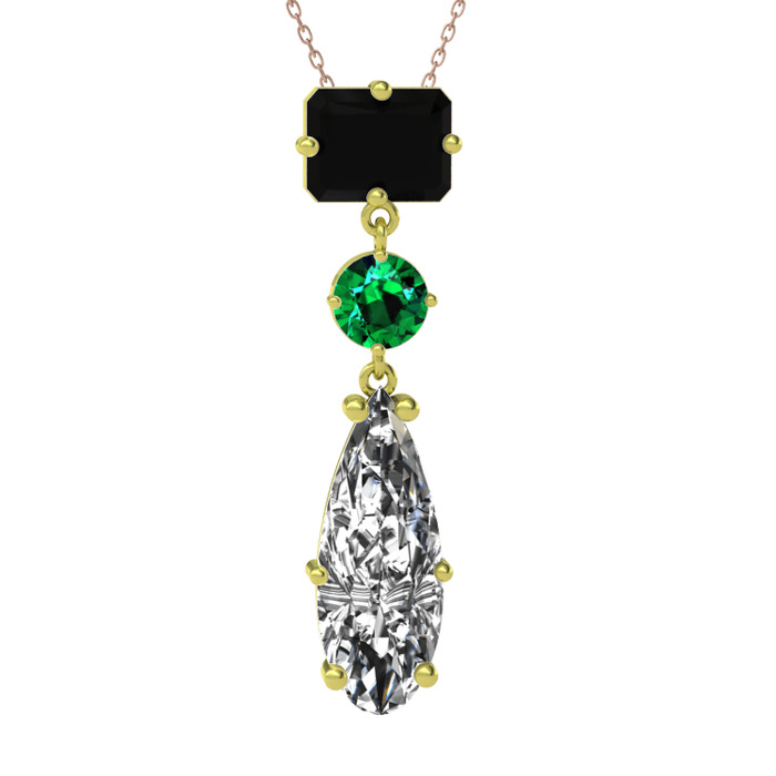 Siyah zirkon, yeşil kuvars ve beyaz zirkon 925 ayar altın kaplama gümüş kolye (40 cm rose altın rolo zincir)