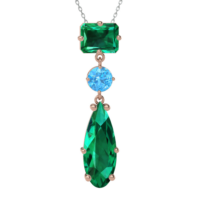 Yeşil kuvars ve akuamarin 14 ayar rose altın kolye (40 cm beyaz altın rolo zincir)