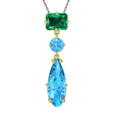 Yeşil kuvars ve akuamarin 8 ayar altın kolye (40 cm gümüş rolo zincir)