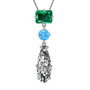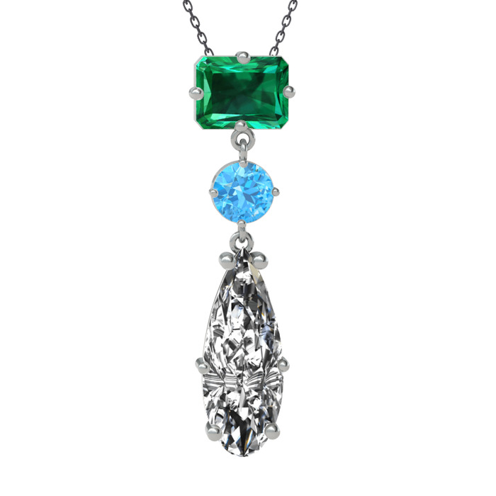 Yeşil kuvars, akuamarin ve beyaz zirkon 18 ayar beyaz altın kolye (40 cm gümüş rolo zincir)