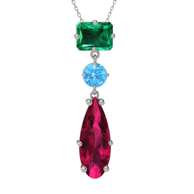 Yeşil kuvars, akuamarin ve rodolit garnet 18 ayar beyaz altın kolye (40 cm beyaz altın rolo zincir)