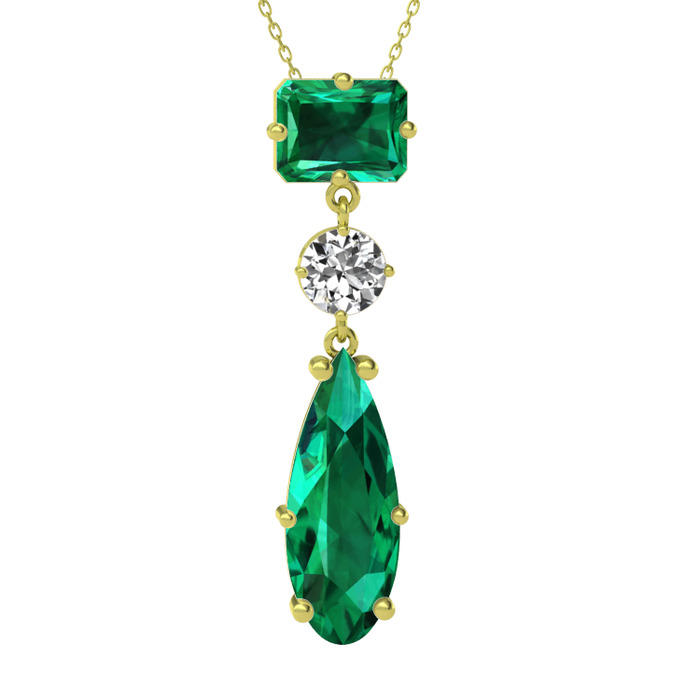 Yeşil kuvars ve beyaz zirkon 925 ayar altın kaplama gümüş kolye (40 cm gümüş rolo zincir)
