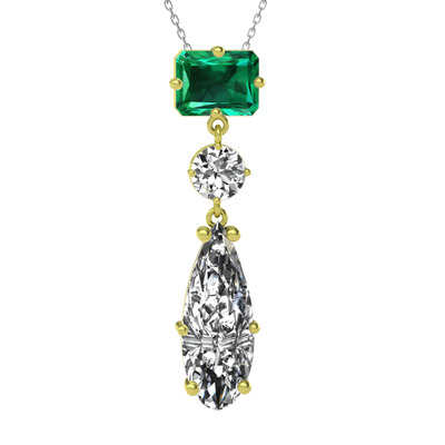 Yeşil kuvars ve beyaz zirkon 925 ayar altın kaplama gümüş kolye (40 cm gümüş rolo zincir)
