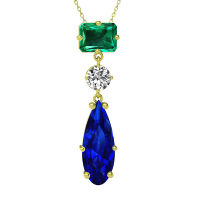 Yeşil kuvars, beyaz zirkon ve lab safir 14 ayar altın kolye (40 cm gümüş rolo zincir)