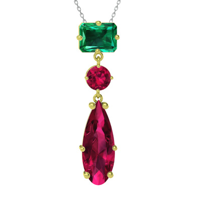 Yeşil kuvars ve rodolit garnet 925 ayar altın kaplama gümüş kolye (40 cm gümüş rolo zincir)
