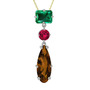 Yeşil kuvars, rodolit garnet ve dumanlı kuvars 8 ayar beyaz altın kolye (40 cm gümüş rolo zincir)