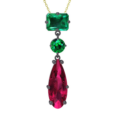 Yeşil kuvars ve rodolit garnet 925 ayar siyah rodyum kaplama gümüş kolye (40 cm altın rolo zincir)