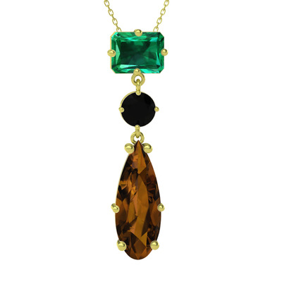 Yeşil kuvars, siyah zirkon ve dumanlı kuvars 8 ayar altın kolye (40 cm gümüş rolo zincir)