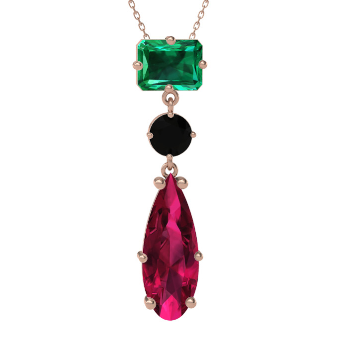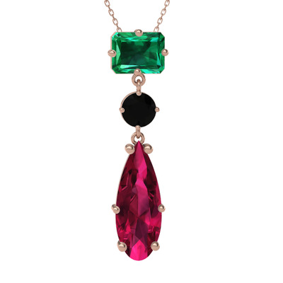 Yeşil kuvars, siyah zirkon ve rodolit garnet 14 ayar rose altın kolye (40 cm gümüş rolo zincir)