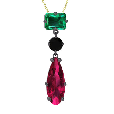 Yeşil kuvars, siyah zirkon ve rodolit garnet 925 ayar siyah rodyum kaplama gümüş kolye (40 cm altın rolo zincir)