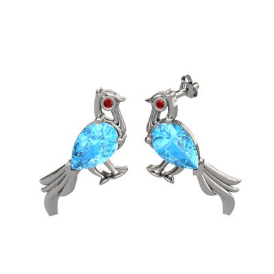 Akuamarin ve garnet 18 ayar beyaz altın küpe