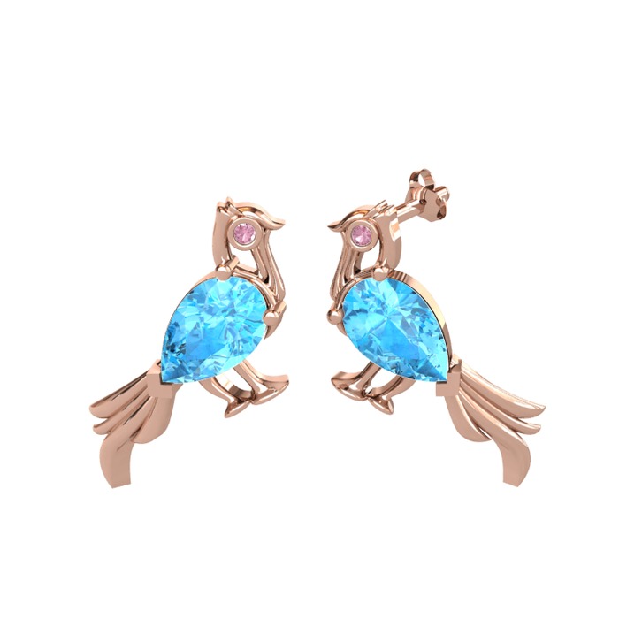 Akuamarin ve pembe kuvars 18 ayar rose altın küpe