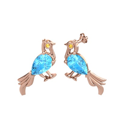 Akuamarin ve sitrin 18 ayar rose altın küpe