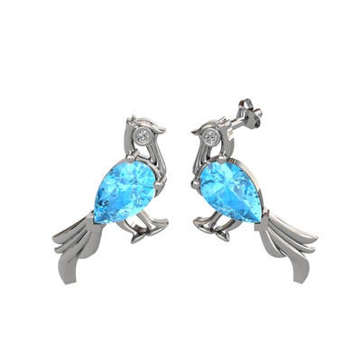 Akuamarin ve swarovski 925 ayar gümüş küpe