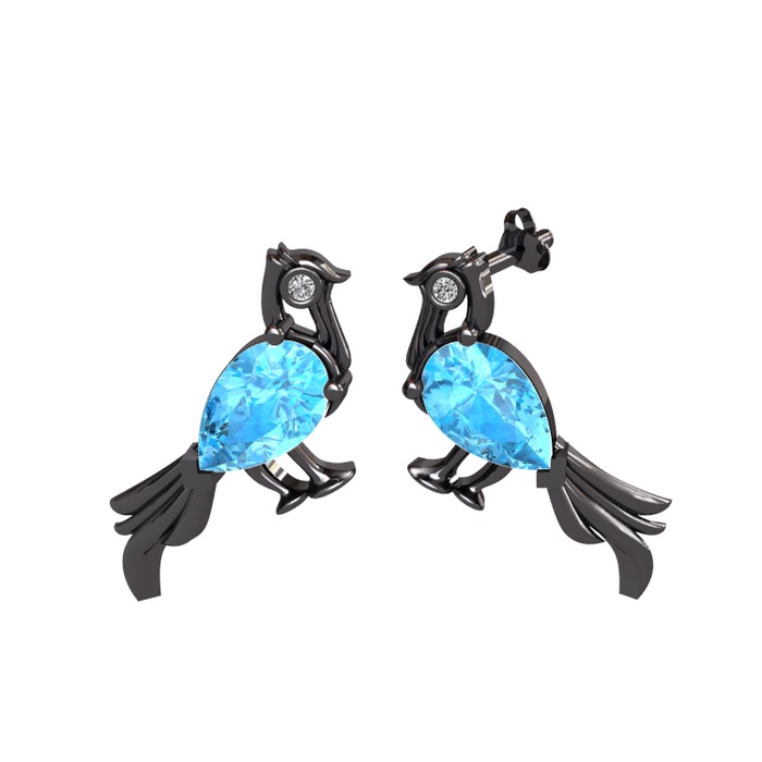 Akuamarin ve swarovski 925 ayar siyah rodyum kaplama gümüş küpe