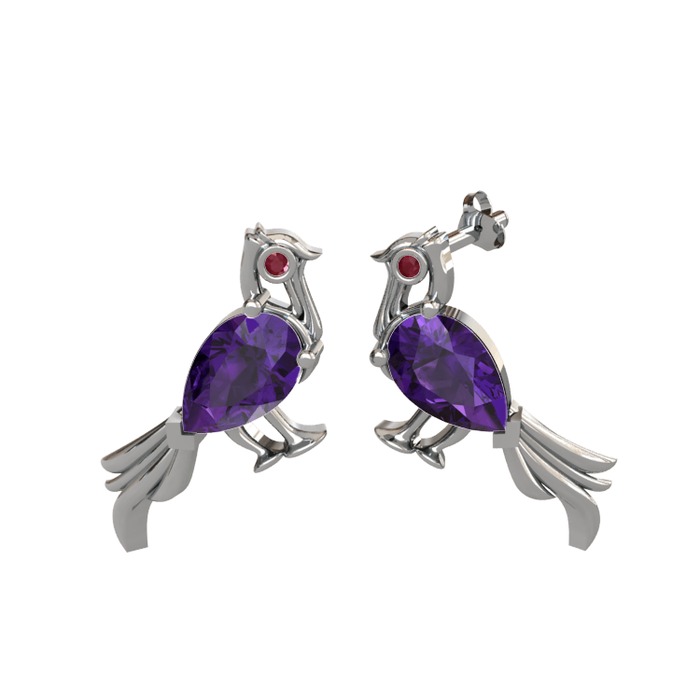 Ametist ve kök yakut 18 ayar beyaz altın küpe