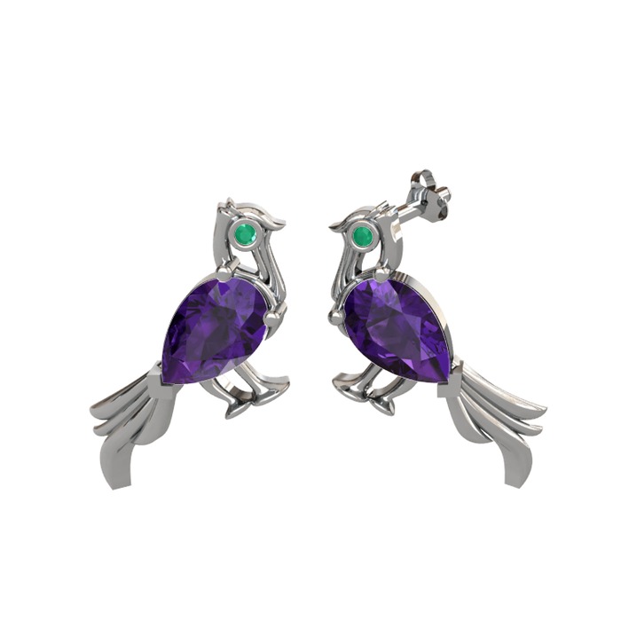 Ametist ve kök zümrüt 18 ayar beyaz altın küpe