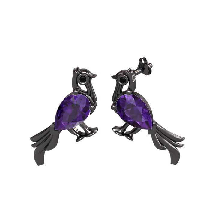 Ametist ve siyah zirkon 925 ayar siyah rodyum kaplama gümüş küpe
