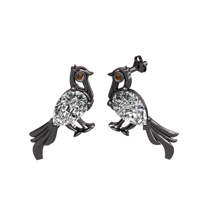 Beyaz zirkon ve dumanlı kuvars 925 ayar siyah rodyum kaplama gümüş küpe