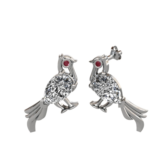 Beyaz zirkon ve kök yakut 14 ayar beyaz altın küpe