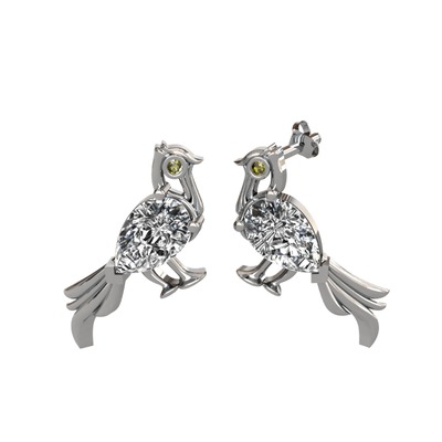 Beyaz zirkon ve peridot 18 ayar beyaz altın küpe